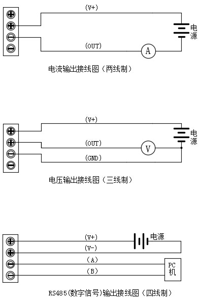 输出信号:4 ~ 20mA、0 ~ 5VDC、0 ~ 10VDC、RS485、4 ~ 20mA HART