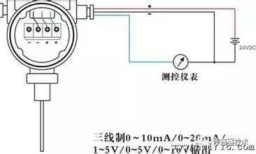 热阻由三线系统连接。采用三线制,消除了因连接线电阻引起的测量误差。这是因为测量热阻的电路通常是一个不平衡的电桥。热阻是电桥的桥臂电阻,它的连接线(从热阻到中央控制室)也成为桥臂电阻的一部分。这部分电阻未知,随环境温度而变化,导致测量误差。采用三线制,一根导线连接到电桥的电源端,另外两根导线分别连接到热电阻所在的桥臂和桥臂附近的桥臂,消除了导线电阻带来的测量误差。